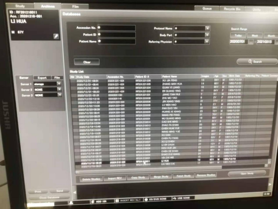 检修过程描述:1.打开采集软件,发现检查后的病人较多,导致影响采集软件的运行速度,点击删除病人输入密码:servicetos。选中需要删除的病人开始删除