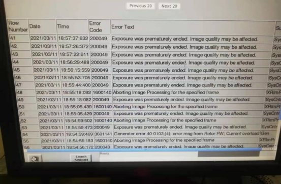 2.门诊GE飞天6000DR 偶发报错查看,根据报错信息判断为球管故障(后续检修时判断旋阳板上的启动电容坏)