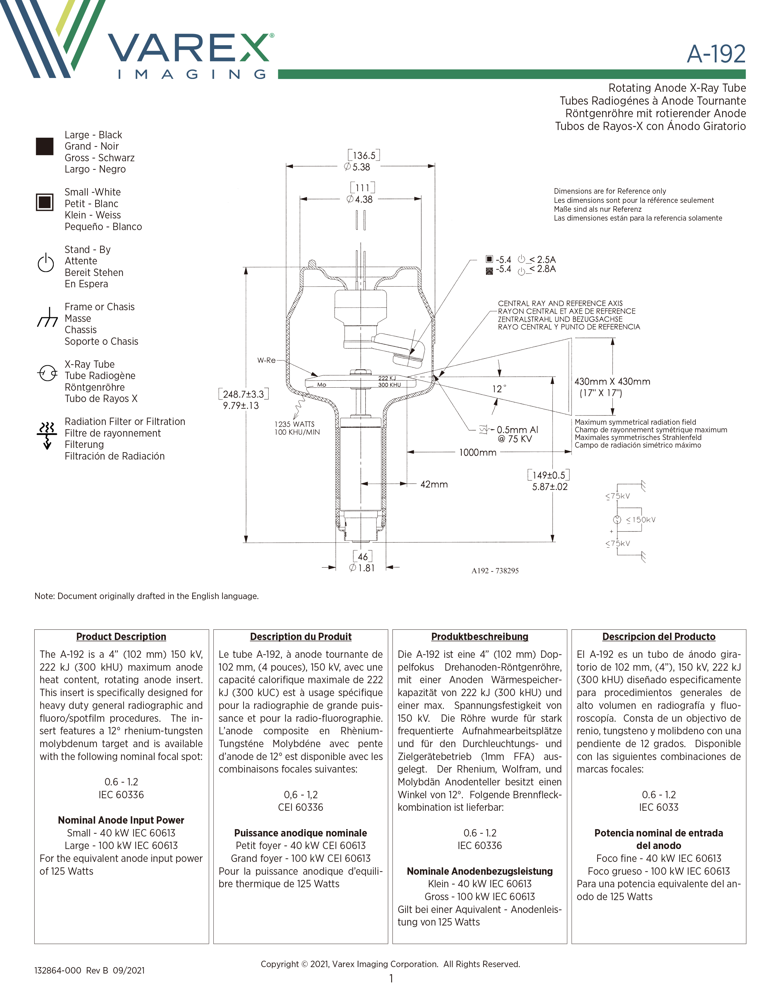 产品名称 : 万睿视Varex原瓦里安varian A192球管