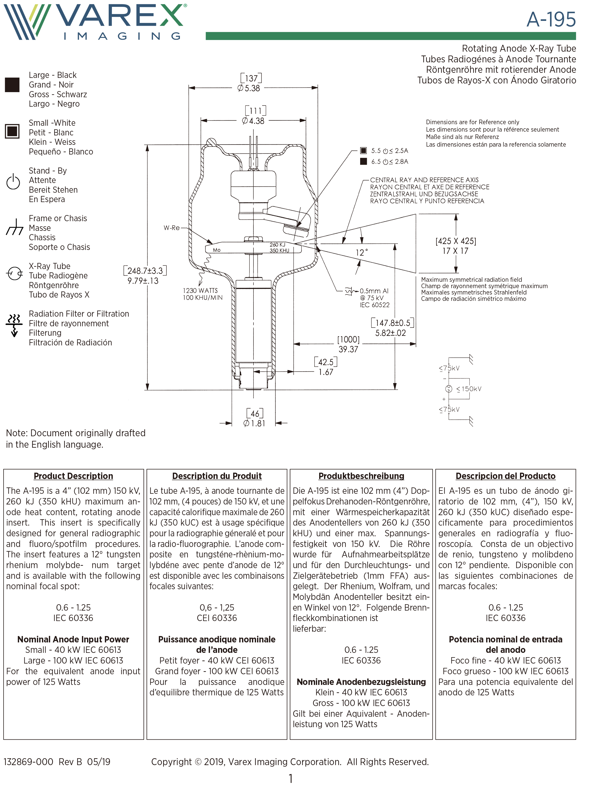 产品名称 : 万睿视Varex原瓦里安varian A195球管