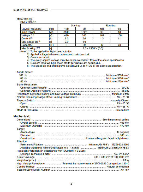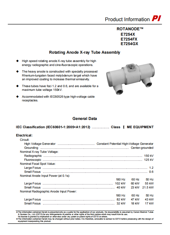 产品名称 : 佳能(原东芝Toshiba)E7254FX球管
