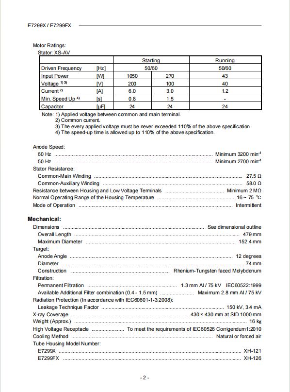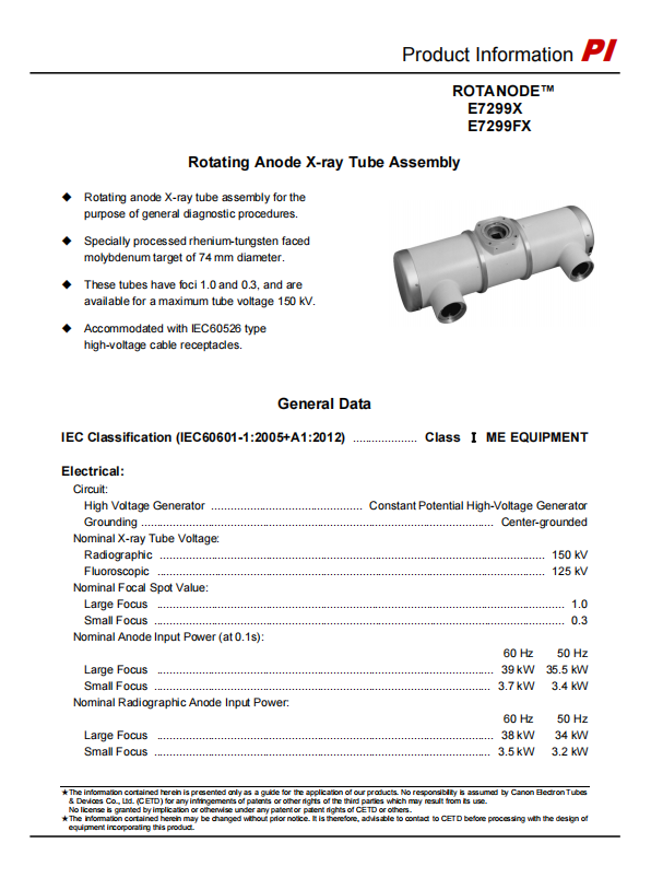 产品名称 : 佳能(原东芝Toshiba)E7299X球管