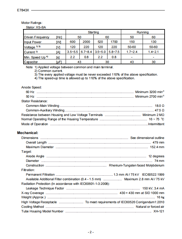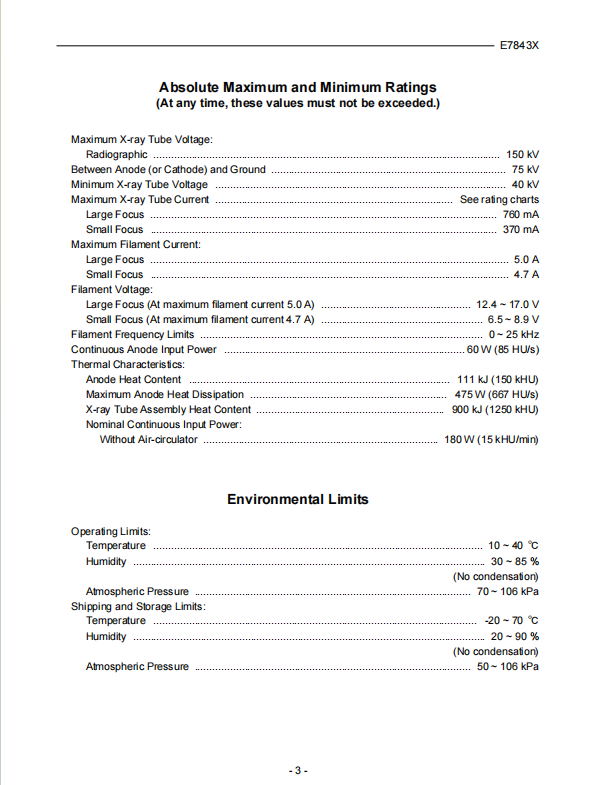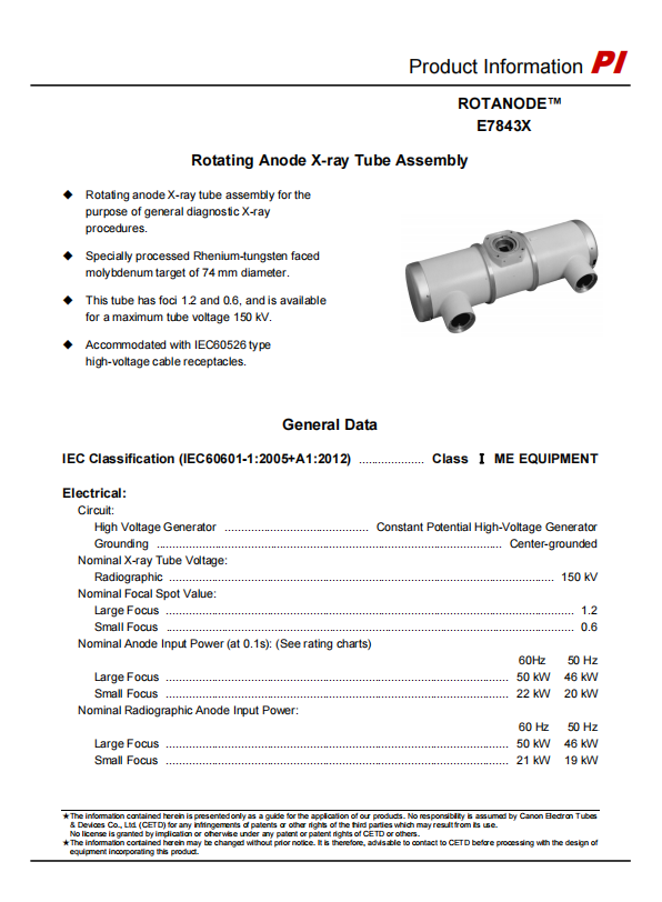 产品名称 : 佳能(原东芝Toshiba)E7843X球管