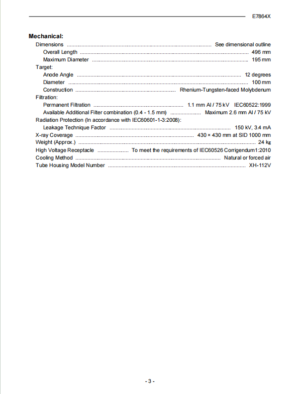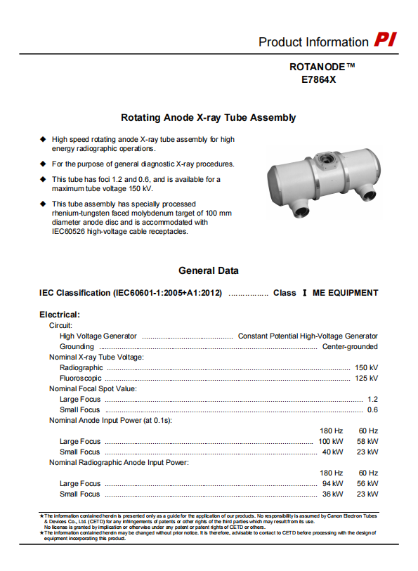 产品名称 : 佳能(原东芝Toshiba)E7864X球管