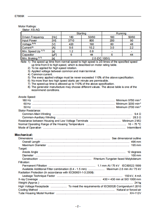 产品名称 : 佳能(原东芝Toshiba)E7869X球管