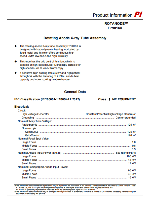 产品名称 : 佳能(原东芝Toshiba)PE-E79016X球管