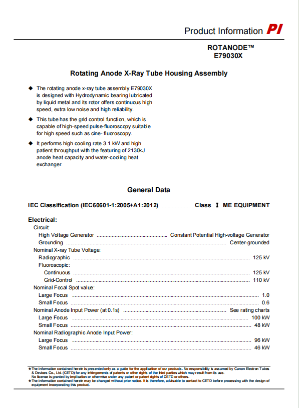 产品名称 : 佳能(原东芝Toshiba)PE-E79030X球管