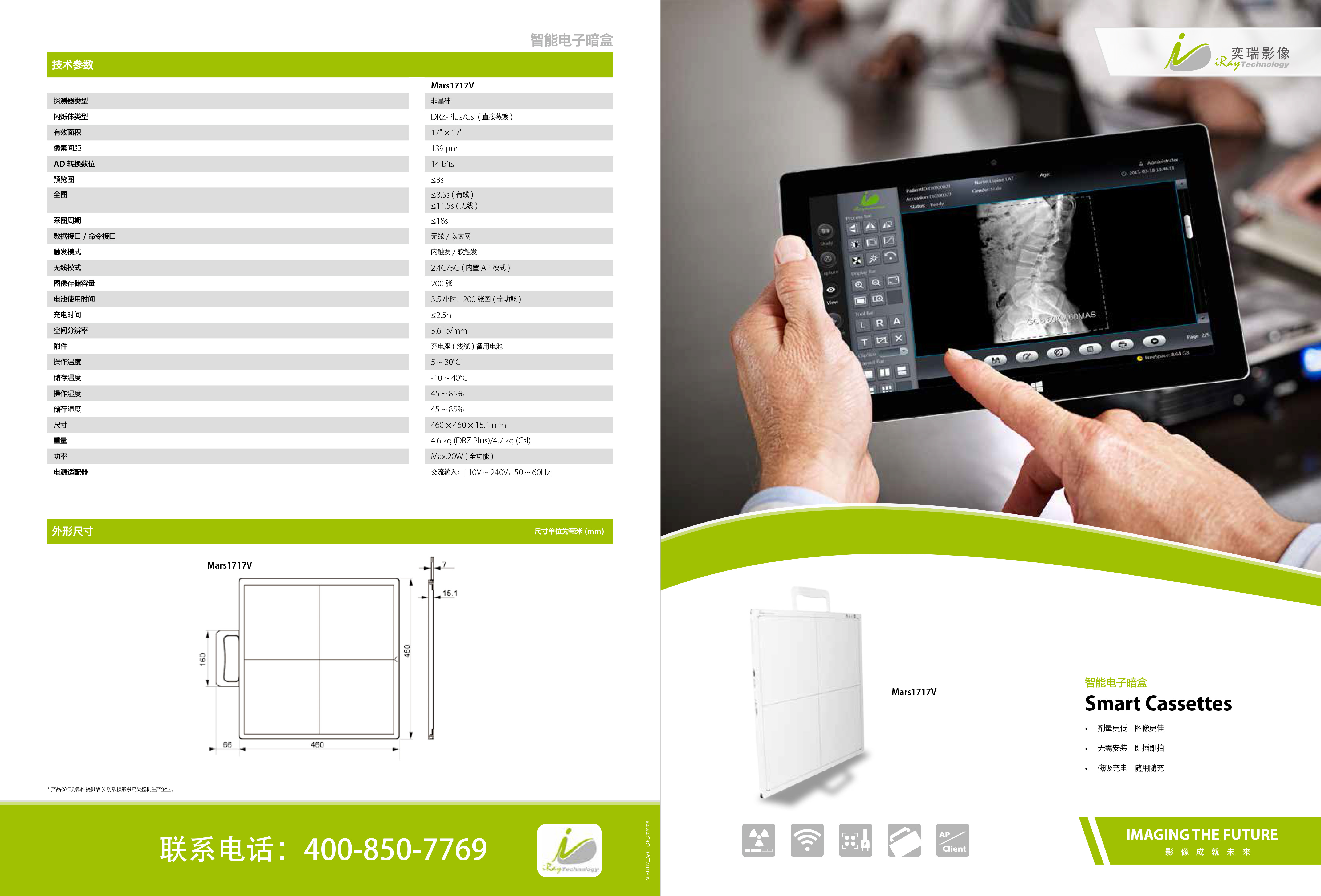 产品名称 : 奕瑞Mars1717V无线平板探测器