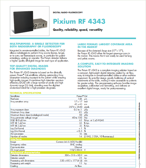 产品名称 : 泰雷兹THALES Pixium RF_4343_EN平板探测器