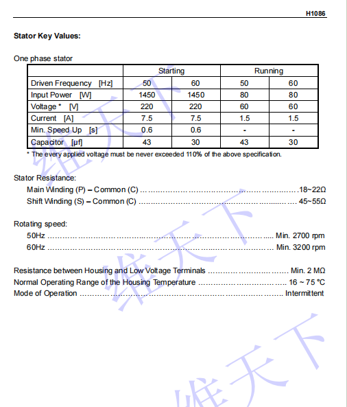 产品规格型号 : H1086